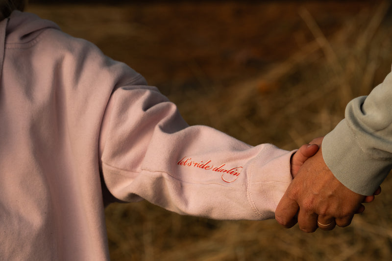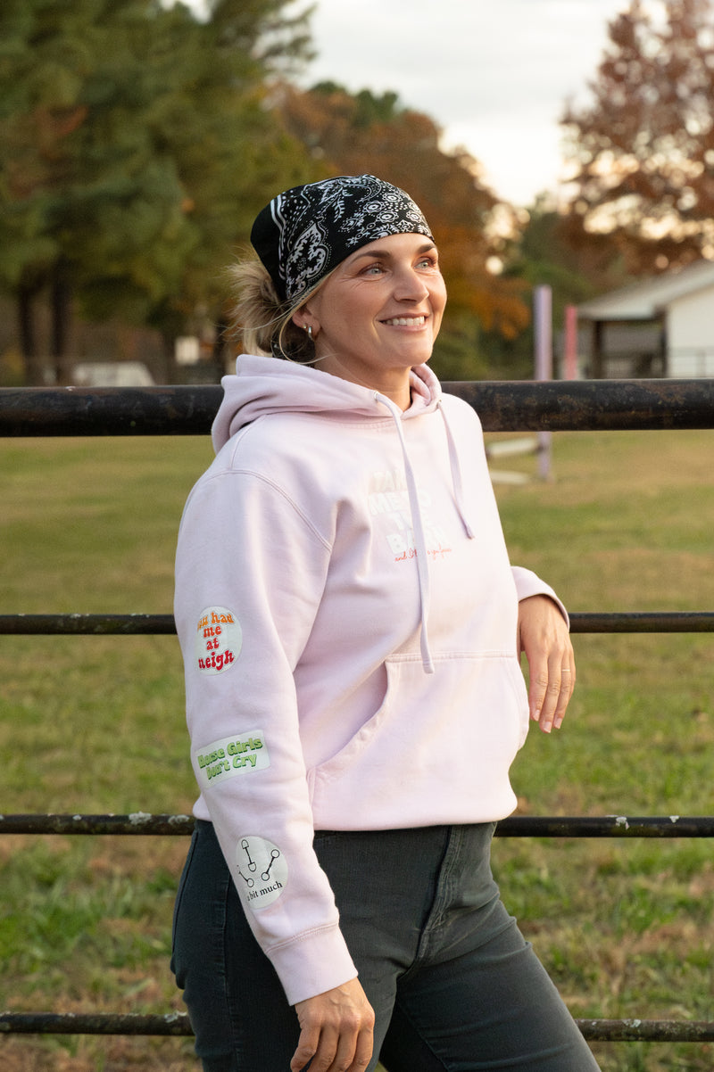 This one is for the girls! Our light pink Take Me to the Barn and I’ll Love You Forever hoodie brings all the flirty barn-day energy you could dream of. Featuring bold white block lettering and a sweet red cursive touch, it’s playful, feminine, and effortlessly darling. Crafted from our ultra-soft fleece with that already-broken-in feel, it’s made for everything from early morning rides to lazy weekend lounging.